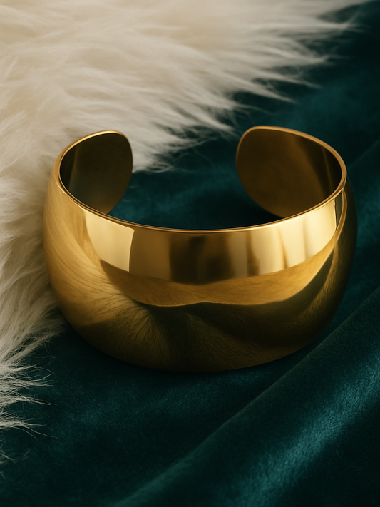 Wide Cuff Gold Plated Adjustable Bracelet- Anti Tarnish