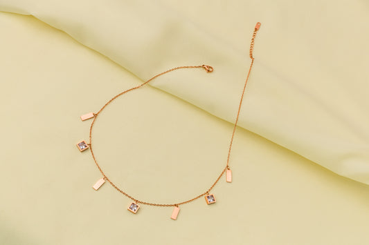 Dainty Rectangular Gem Chain-Rose Gold