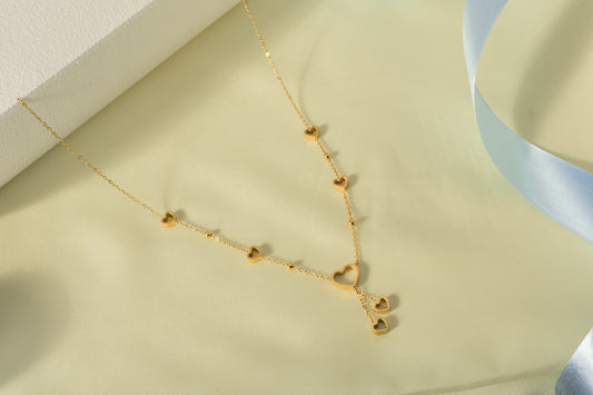 "Linked by Love" Gold Heart Station Chain