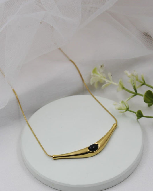 Gold Tone Hasali Necklace with Black Crystal