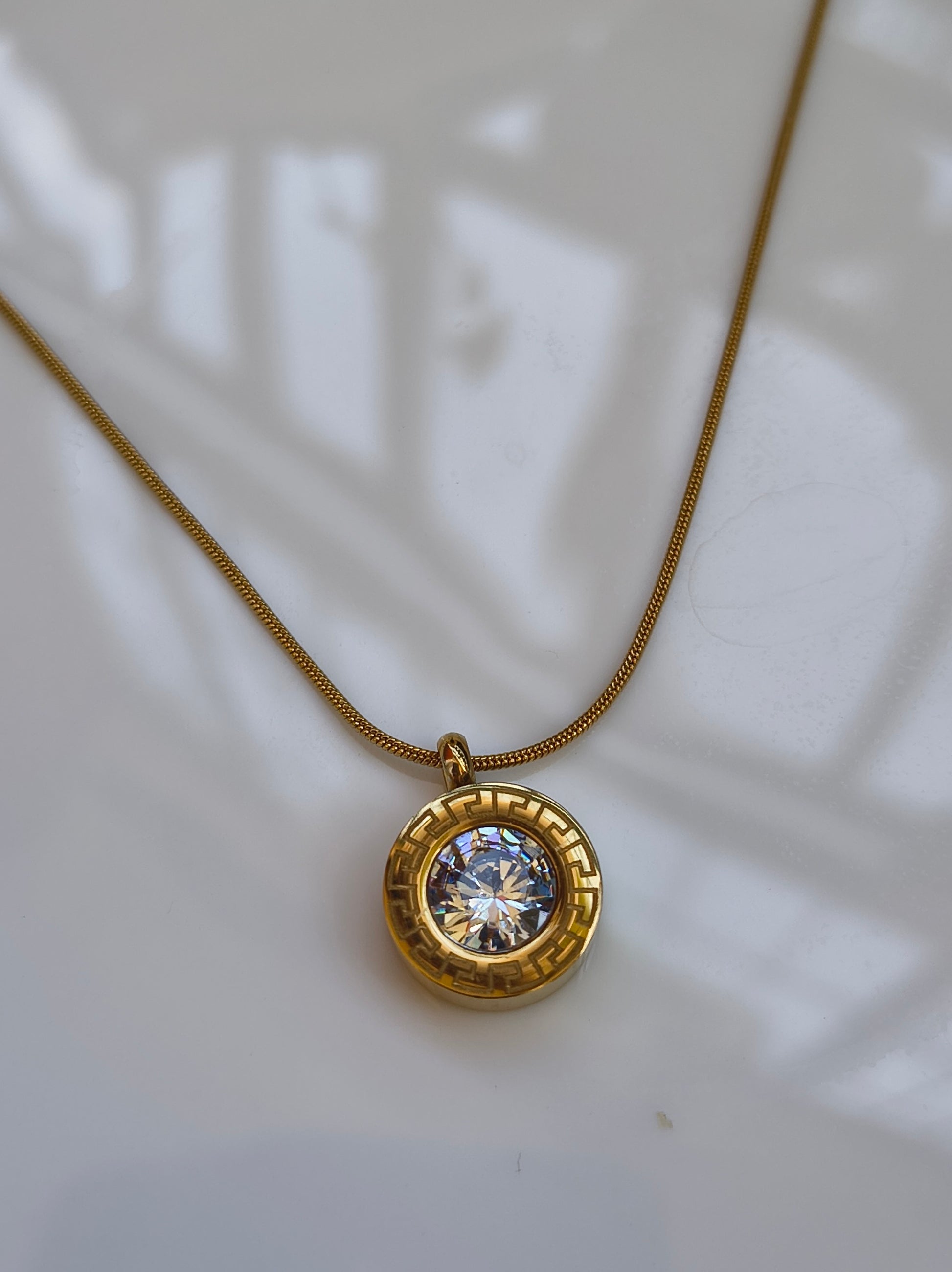 Discover the epitome of elegance with our Luxury Gold Pendant Necklace. Adorned with a sparkling stone, this necklace adds a touch of glamour to any outfit. Made with high-quality materials, it exudes luxury and sophistication. Perfect for special occasions or adding a touch of luxury to everyday wear.